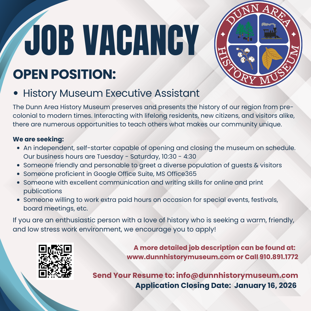 If you love local history and would like to support our museum as a valued staff member, take a look below and reach out with questions or interest.